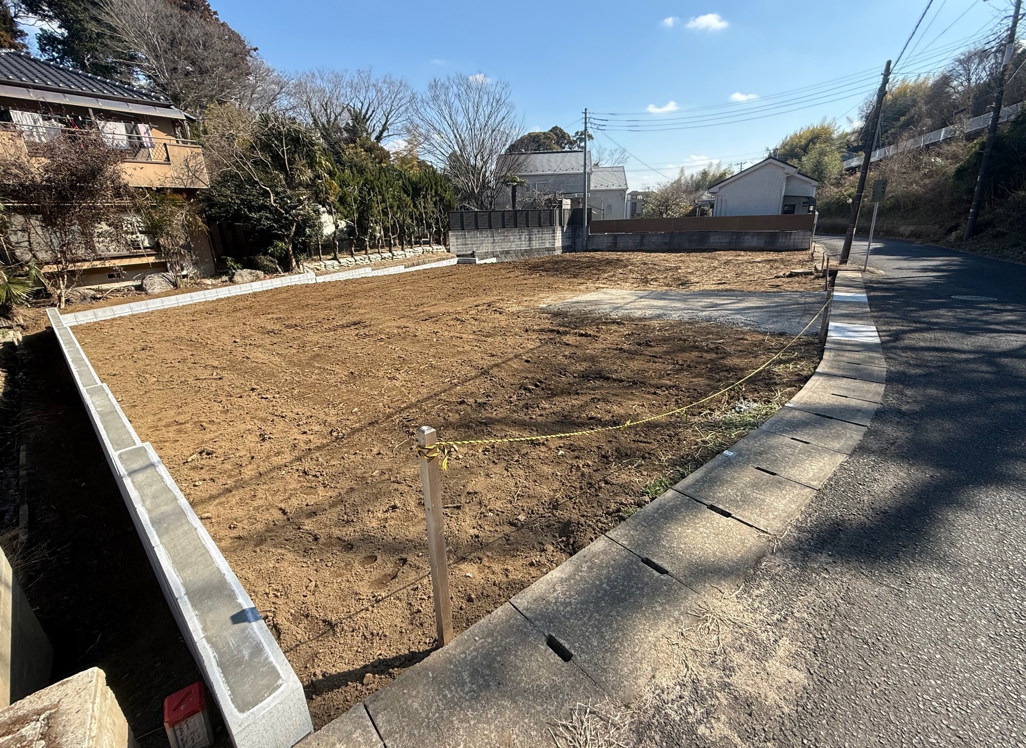 各区画において、敷地内の南側隣地境界線付近にブロックの設置をお願いいたします。