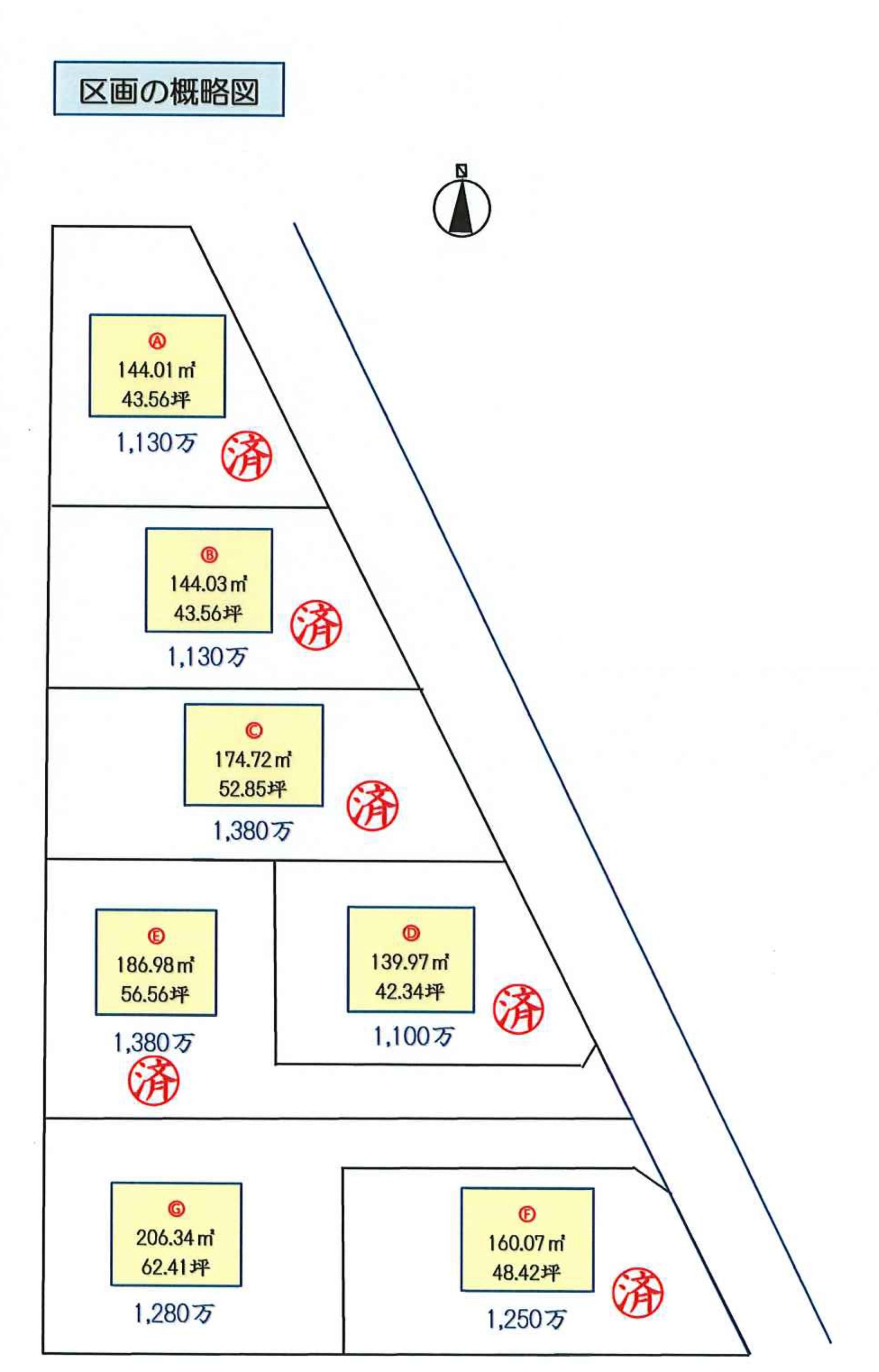 A:売却済み B:売却済み C:売却済み D売却済み E:売却済み F:売却済み G:1,280万円