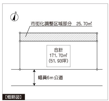 ※土地面積171.70㎡の内、25.70㎡は市街化調整区域に存しているため、敷地面積に算入できません。(有効面積146㎡(44.16坪)